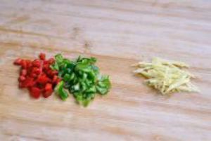 2热油倒在事先准备好的葱,蒜泥,红辣椒,姜丝 把黑木耳入开水一分钟左右