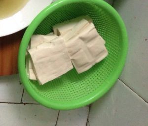把豆腐切片,厚度0.8厘米左右薄厚适度