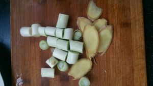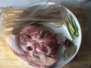 太着急做了,忘了拍照。事先将粉条用凉水泡四个小时,猪肉切成五厘米左右的长条,葱切段,姜切片。