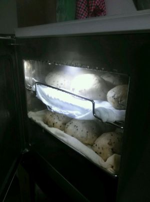 揉至光滑不黏手时静置发酵,用保鲜膜裹着是怕有虫子飞来,而且我觉得裹着发酵会比较好,看网上的好像是用块布盖着的。。。