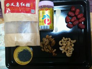 准备材料,核桃,芝麻,红枣,腰果都洗干净。