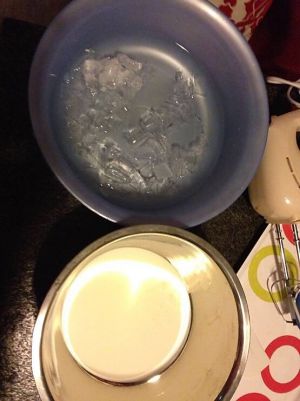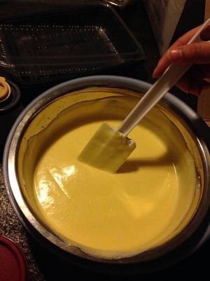 一共需要搅拌四次,听说少了会有冰碴,这是第四次时候的样子,基本成品就是这样的了。看起来还不错是不是?每次搅拌我都会偷吃一口,真的太好吃啦。