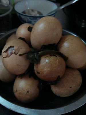 煮滚後再煮大概一兩個钟,然后熄火待鸡蛋入味!大概5,6个钟就完全入味了