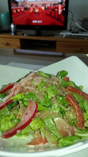 所有材料拌匀,加入橄榄油,葡萄酒醋,盐,胡椒粒等