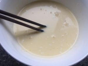 所有材料倒进去搅拌均匀,我顺手拿了筷子搅拌。