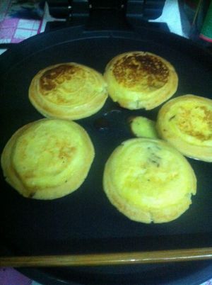 1纯牛奶加入白砂糖搅拌均匀。 2然后加入玉米淀粉,原味奶酪,搅拌均匀。 3然后打入鸡蛋,搅拌均匀,过筛两次。4电饼档放入蛋挞皮,倒入随浆,八分满。 5开始加热,用根筷子放在上下层顶住,这样蛋浆不会溢出。
