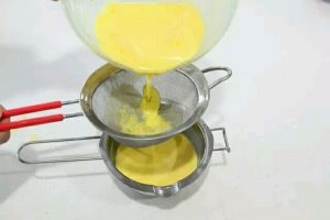 4.拌匀后的蛋挞液过滤一下。