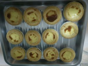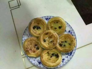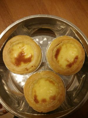 蛋挞烤好啦,非常好吃哦。可以根据自己的喜好加入蓝莓,棉花糖或者红豆,蔓越莓哦