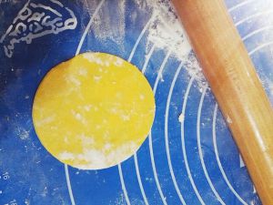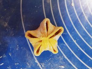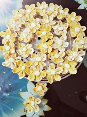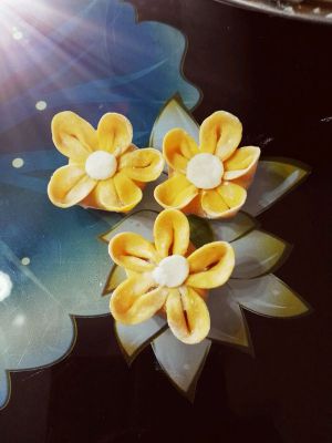 取少许面粉捏成小球按扁沾些水放在中间做花心