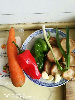 所有食材准备好,(因为我这没有买到黄椒所以用胡萝卜代替了)葱只需葱白部分。