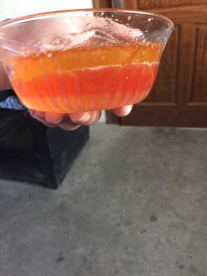 大概十分钟就会凝固,取出后,倒入另外一种颜色的QQ糖水。
