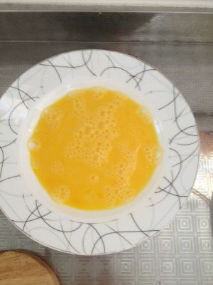 虾皮用清水淘洗几遍,控干水分备用,鸡蛋去壳磕入大碗中,调入盐,糖,少许胡椒粉搅打均匀,将虾皮放入搅匀。