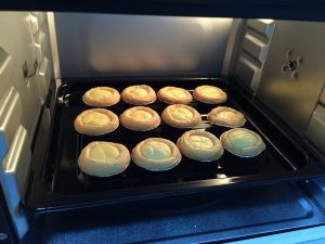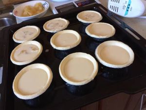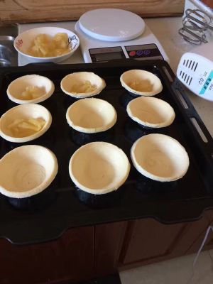 5.将蛋挞装在软化好的蛋挞皮中,这里注意大概八九分满就好。