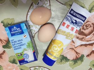准备好牛奶一支200g,炼奶,鸡蛋2只。