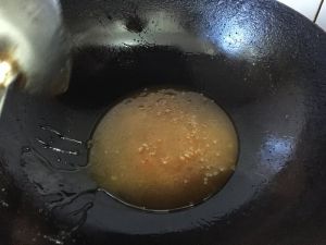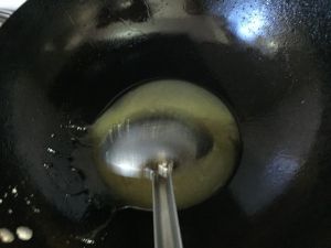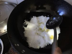 留少许油在锅里,加入白糖,小火加热并不断搅拌至焦糖色