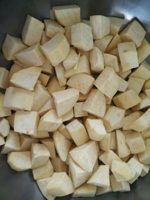 将地瓜刮皮,洗净,切块!