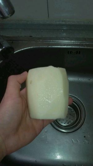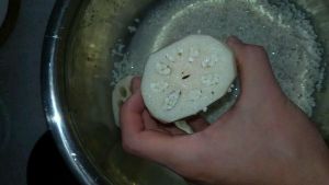莲藕去皮,两端切断,中心孔洞冲洗干净