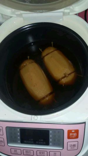 加水没过莲藕,放入红糖,冰糖,选择煲汤模式两个半小时后开盖晾凉