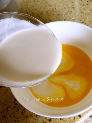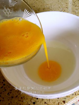 蛋黄打散倒入牛奶中然后搅拌均匀
