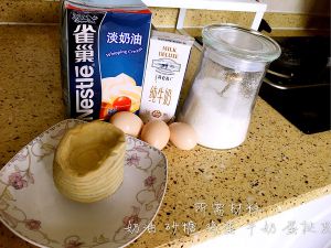 蛋黄三个打散,炼乳和淡奶油,白糖各自称重备用