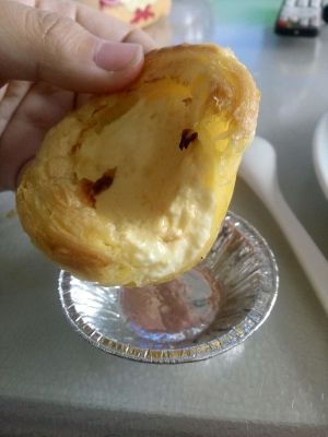 然后倒入自制好的挞液,最后成本约1.2元一个蛋挞O(∩_∩)O