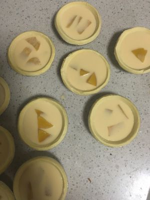 过滤两遍后加入已经准备好的黄桃挞皮中,九分满即可!