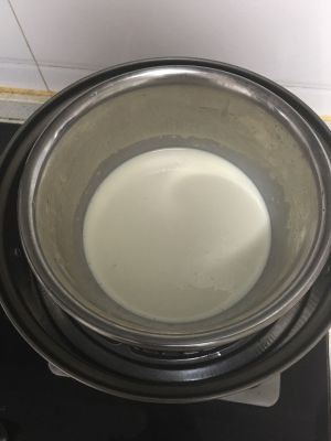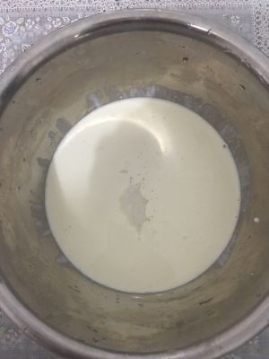将鸡蛋加入放凉的奶液中,继续搅拌!