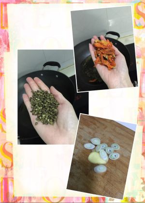 加入大把的麻椒、红辣椒、以及葱姜。