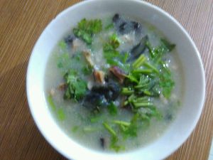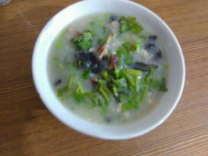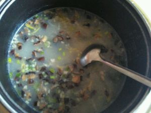 食用前撒上些许葱花味道更好。我家里没葱了,就撒了点油炸葱头,这边的人喝粥都是撒些这个,就算是入乡随俗吧。