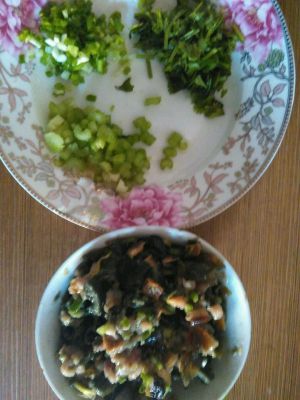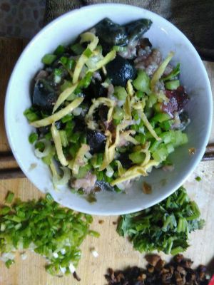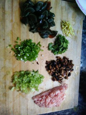 因为比较懒,所以把香菇,皮蛋和少许葱姜芹菜跟肉末一起拌了