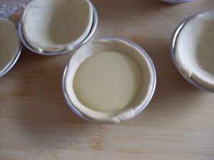 烤箱提前180度预热10分钟,放入做好的蛋挞,180度烤25分钟