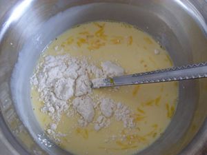 蛋黄蛋白分开,搅匀,等奶液放凉至60度以下再分别拌进去(超过60度蛋就会熟哦);