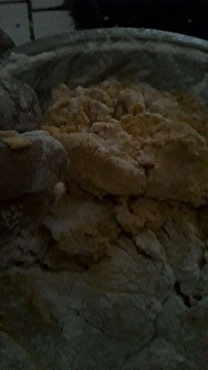 加400克糯米粉,分多次加入,根据搅拌干湿情况加。