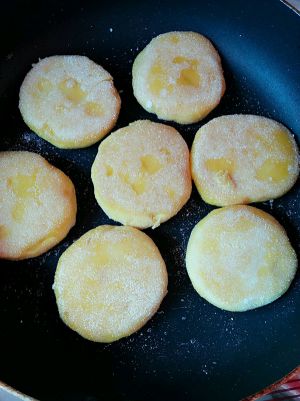 把不粘平底锅加热,放入少许少许少许油,依次放入南瓜饼,两面翻个,小火煎至黄咖,即可出锅。