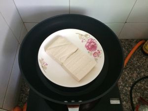 一盒内脂豆腐,扣进餐具里,切切切切碎