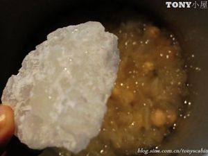 打开锅盖,大火再次煮开后放入冰糖,盖上锅盖改小火再煮5分钟就可以了。