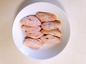 鸡翅洗净,去血水。每个鸡翅正反两面各切一刀,备用。