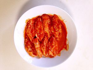 将翅根用刀割几刀,用盐巴给它们按摩下~放入奥尔良粉抓均匀,再给按摩下,放入冰箱冷冻一晚上