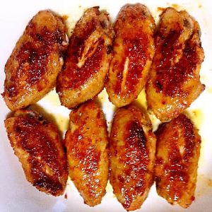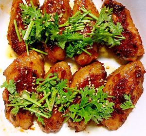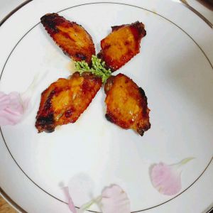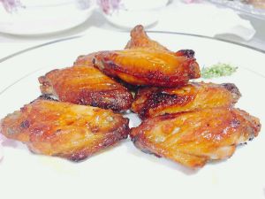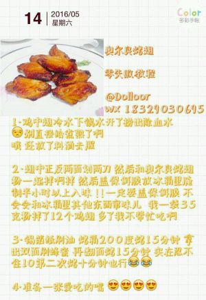 入烤箱200度上下火25分钟,时间自己掌握,(因为每台烤箱的大小温度不同),在烤的途中给鸡翅刷上蜂蜜水,翻面再烤!因为刷上蜂蜜,所以锡纸变焦黑了,请大家忽视,对鸡翅没啥影响的!