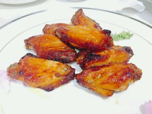 烤盘铺上锡纸,翅根放入摆好,刷上蜂蜜,烤箱上下火,中间层,180度,10分钟后拿出来翻个面,再刷次蜂蜜,再烤5分钟