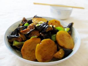 倒入炸好的茄子和土豆块翻炒