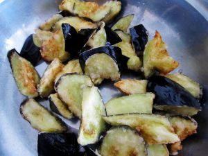杀出水的茄子沾上土豆淀粉