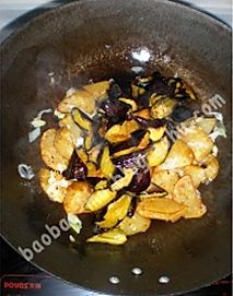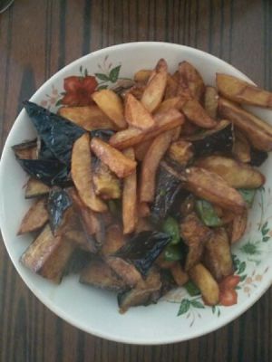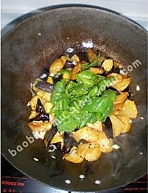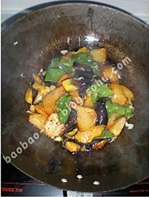 翻炒几下后放入熟的茄子 土豆,加适量的盐,味精,酱油自己少量的水翻炒几下就可出锅(如果可以掂勺,掂几下就可以了)