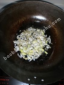 炒锅内放少量的油,放入葱段和姜末,小火将葱段和姜末炒香。