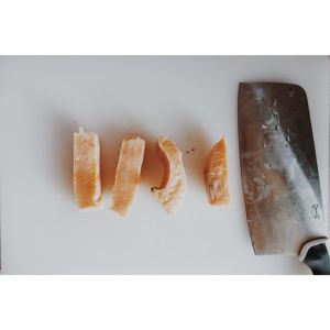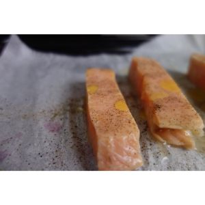在Costco 买的三文鱼,洗干净放在烤盘里备用