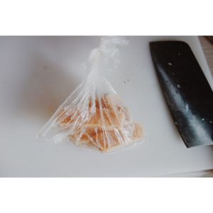 放到保鲜袋,加点柠檬汁,放冰箱腌制,也可以不腌制