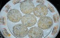 搅拌均匀后,用手拿一块造型成圆饼状;