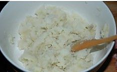 把蒸熟的土豆里加点盐,与胡椒粉,弄成土豆泥