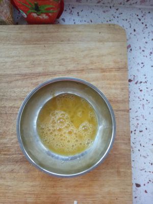 把鸡蛋加盐,打成蛋液,再把土豆泥沾上蛋液