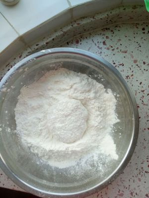 把拌好的土豆泥弄成饼的样子,放进面粉里,粘上面粉